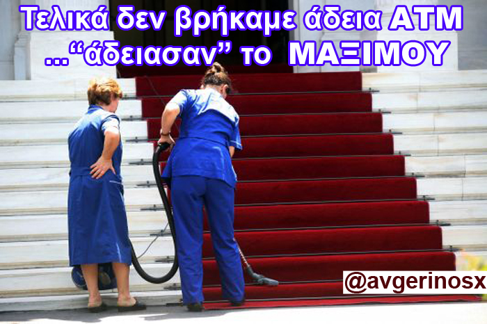 27 Ιανουαρίου, 2015 by @avgerinosx Αδειασαν το Μαξίμου κι όχι τα ΑΤΜ ΕΙΚΟΝΑ ΓΙΑ DOWNLOAD Κοινοποιήστε: Μοιραστείτε στο X(Ανοίγει σε νέο παράθυρο) Χ Mοιραστείτε στο Facebook(Ανοίγει σε νέο παράθυρο) Facebook Μοιραστείτε στο Pinterest(Ανοίγει σε νέο παράθυρο) Pinterest Κοινοποίηση στο Tumblr(Ανοίγει σε νέο παράθυρο) Tumblr Μοιράσου στο WhatsApp(Ανοίγει σε νέο παράθυρο) WhatsApp Περισσότερα Μοιράσου στο Reddit(Ανοίγει σε νέο παράθυρο) Reddit Εκτύπωση(Ανοίγει σε νέο παράθυρο) Εκτύπωση Στείλε ένα σύνδεσμο σε έναν φίλο(Ανοίγει σε νέο παράθυρο) Email Μου αρέσει! Φόρτωση... Σχετικά